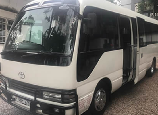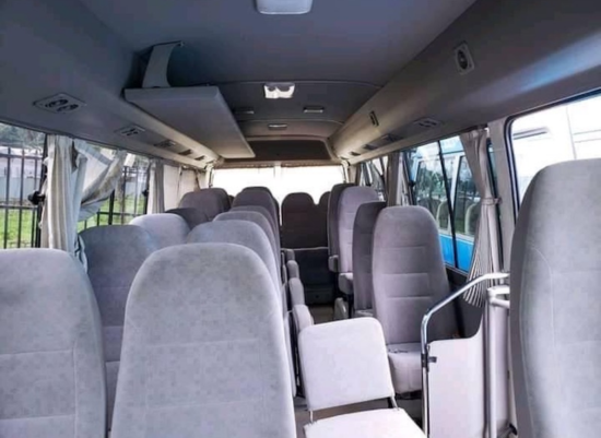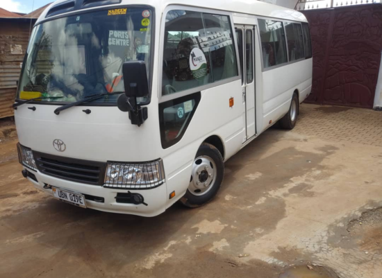 Our spacious 26-seater Toyota Coaster is ideal for large group travel. Whether you’re planning a corporate outing, school trip, wedding event, or tour group expedition across Uganda, this bus ensures everyone rides together in comfort. With wide windows for scenic viewing and a reliable driver included, it’s a practical and economical option for group transport. Self-drive is not available.